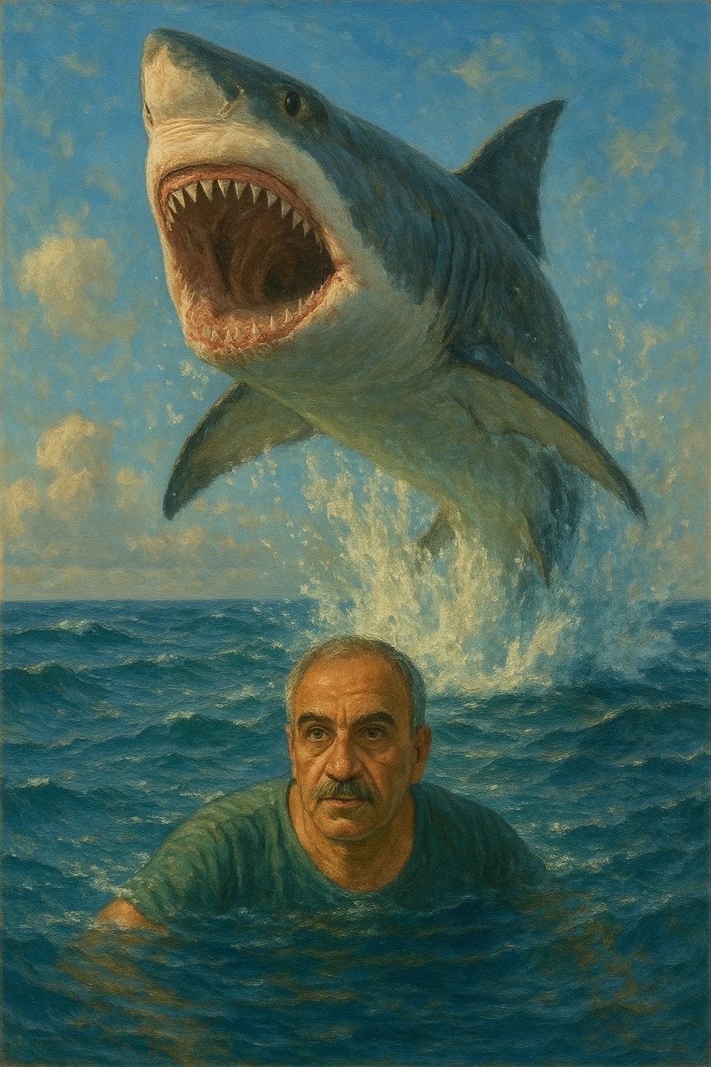 وبينما أستكشف المكان، لمح بصري ظلاً ضخماً… كان حوتًا عظيمًا غارقًا في سبات عميق بجوار السفينة، وكأنهما رفيقا عزلة. فاتخذت الحوت فندقًا عائمًا لمدة يومين؛ أستريح فوق ظهره، أراقب النجوم ليلًا، وأتجول بين بقايا السفينة نهارًا.